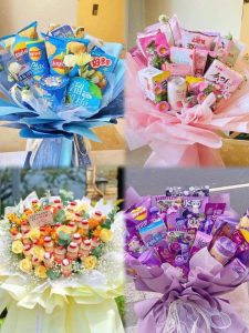 Trong các buổi tiệc nhỏ, gặp mặt bạn bè hay liên hoan, combo bó quà pastel còn trở thành điểm nhấn nổi bật. Sản phẩm vừa mang tính thẩm mỹ cao, vừa đáp ứng nhu cầu thưởng thức bánh kẹo trong không khí vui vẻ.