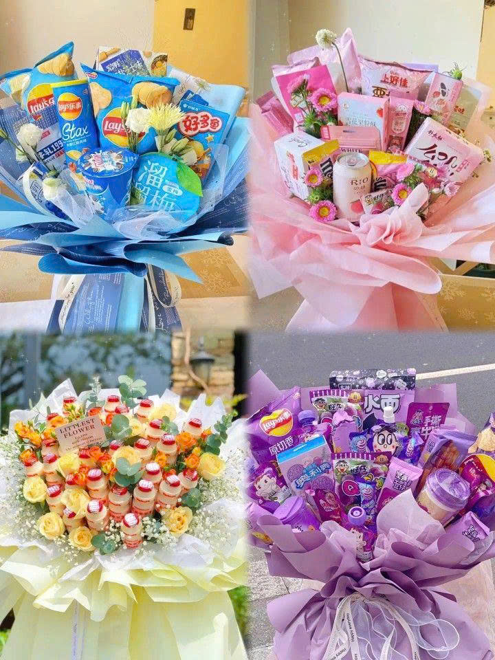 Bên cạnh hình thức, combo bó quà pastel còn hấp dẫn nhờ sự đa dạng sản phẩm bên trong. Bánh kẹo ngọt ngào, snack giòn thơm và nước uống tiện lợi được sắp xếp hài hòa, giúp người nhận có trải nghiệm thưởng thức trọn vẹn. Chính sự kết hợp này khiến combo bó quà pastel không chỉ đẹp mà còn thực tế và hữu ích.